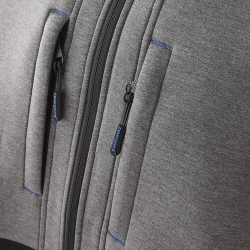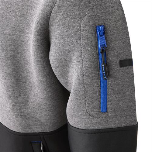 Jacheta termică fabricată din material Air Space gros (320 g/mp), compus din 58% poliester, 36% viscoză și 6% spandex, oferă izolație termică și flexibilitate. Întărituri Oxford 600D la coate pentru rezistență sporită. Dotată cu bandă decorativă reflectorizantă la buzunare pentru vizibilitate îmbunătățită.