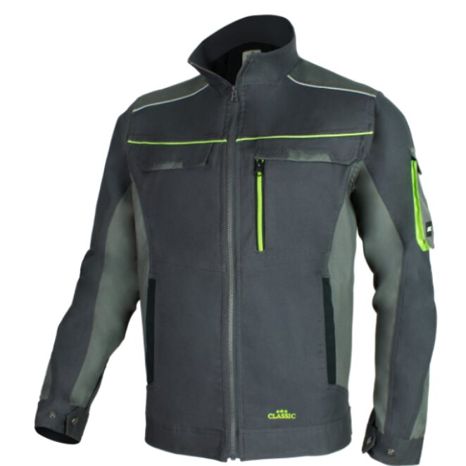 Jachetă de protecție Classic Stretch Slim, elastică și rezistentă, cu design modern. Jacheta Classic Stretch Slim combină un design atractiv cu funcționalități avansate, oferind confort și libertate de mișcare datorită materialului flexibil. Croiala Slim Fit se adaptează perfect corpului, fără a restricționa mișcările, datorită utilizării elastanului în compoziție.