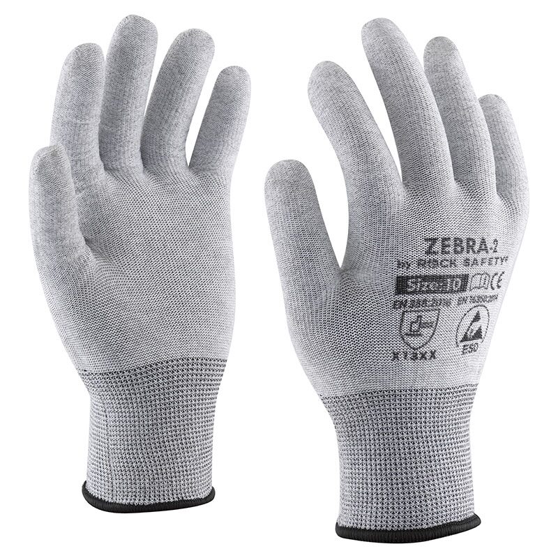 Mănușă ESD Carbon 2, neimersată, realizată din poliester cu fibră de carbon, concepută pentru protecția împotriva descărcărilor electrostatice.