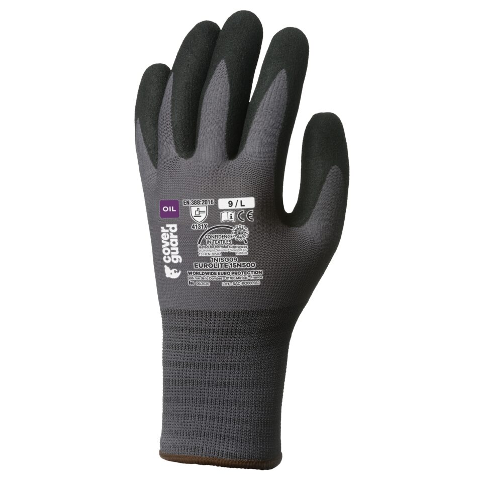 Mănuși de protecție Eurogrip 15N500, din nitril, antiderapante, rezistente la abraziune, gri/negru. Mănușile Eurogrip 15N500 sunt proiectate pentru a oferi aderență maximă și protecție antiderapantă în medii de lucru variate. Datorită stratului special de nitril și materialelor durabile, aceste mănuși asigură siguranță și confort, fiind ideale pentru activități care implică manipularea obiectelor în condiții dificile.