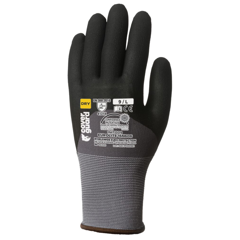 Mănușile pe suport din nylon/spandex, tricotate (calibrul 15), oferă rezistență mare la rupere și abraziune. Imersate în nitril micro-spumat până la osul pumnului, asigură aderență excelentă, iar spatele ventilat și manșeta elastică contribuie la un confort optim. Ușoare, cu formă anatomică, sunt certificate STANDARD 100 by OEKO-TEX (CQ 1301/1, IFTH | 15.HCN.70502, HOHENSTEIN).