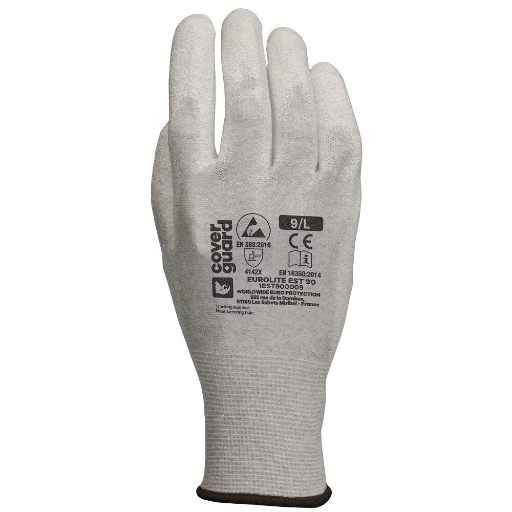 Mănuși de protecție Eurolite EST90 ESD, anti-static, rezistență la descărcări electrostatice. Mănușile Eurolite EST90 ESD sunt proiectate pentru a oferi protecție avansată împotriva descărcărilor electrostatice (ESD), fiind esențiale în industria electronică și în medii de lucru cu echipamente sensibile. Fabricate din poliester de calitate superioară cu fir de carbon ESD, aceste mănuși combină siguranța, confortul și durabilitatea.
