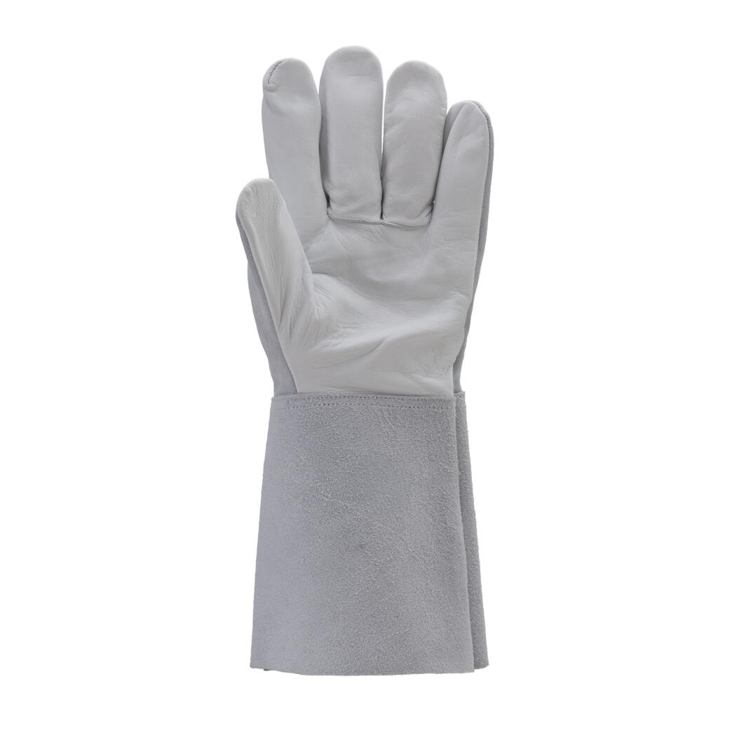 - Material palmă: Piele șpalt bovină – rezistență superioară la căldură și abraziune