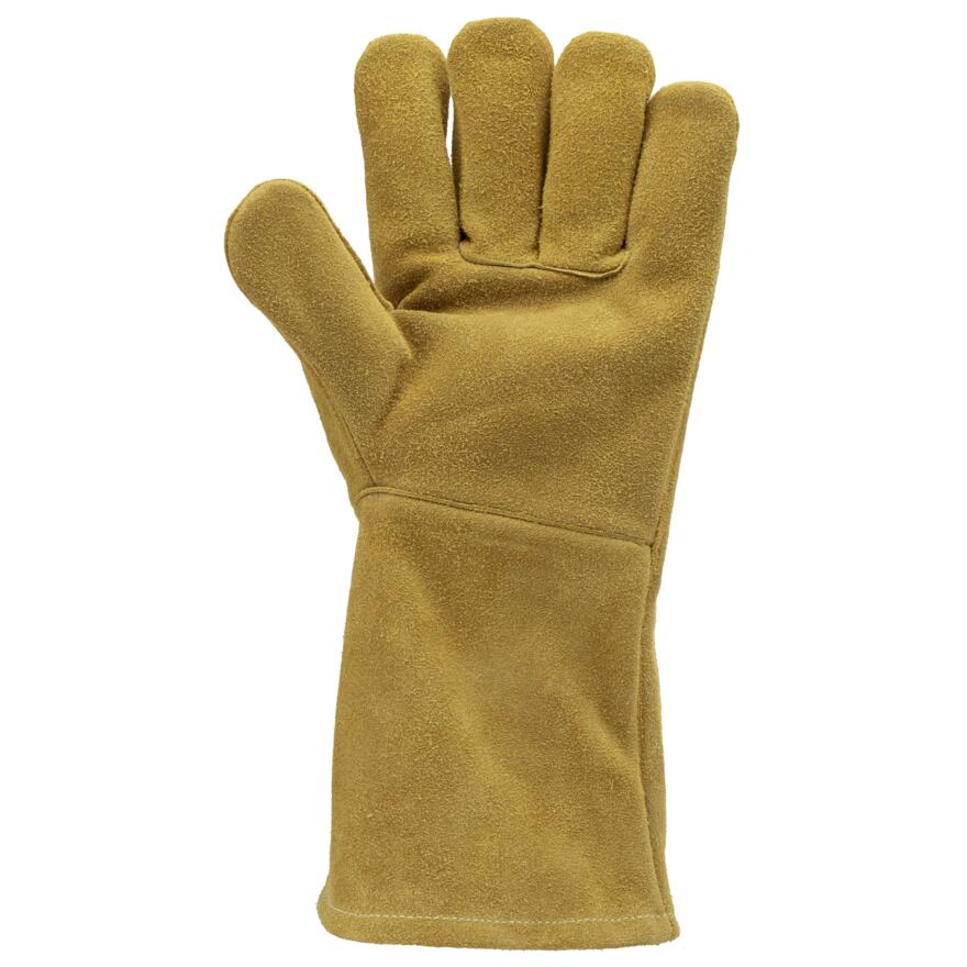 - Material: Piele spalt bovină – oferă rezistență la temperaturi ridicate și protecție împotriva flăcărilor și scânteilor