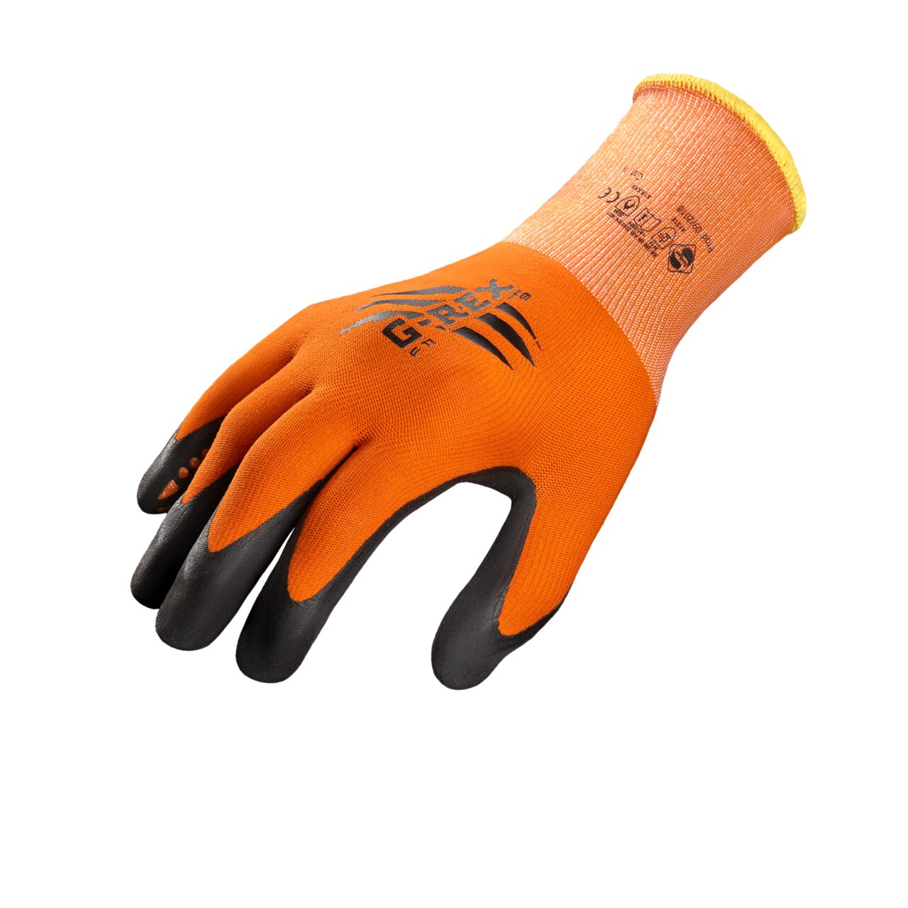 Mănuși de protecție G-REX F10, rezistență ridicată la abraziune. Mănușile G-REX F10 sunt proiectate pentru protecție avansată împotriva abraziunii, tăierii și perforării, fiind ideale pentru industria auto, construcții, logistică, petrol și gaze, precum și utilități. Acestea sunt fabricate din cauciuc nitrilic rezistent, oferind aderență superioară și durabilitate în medii de lucru dificile.