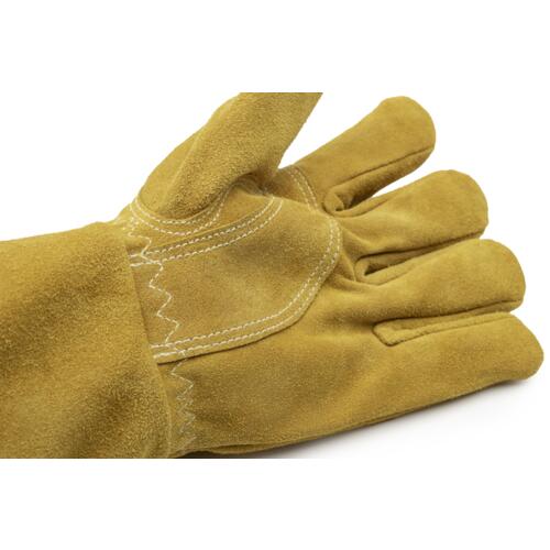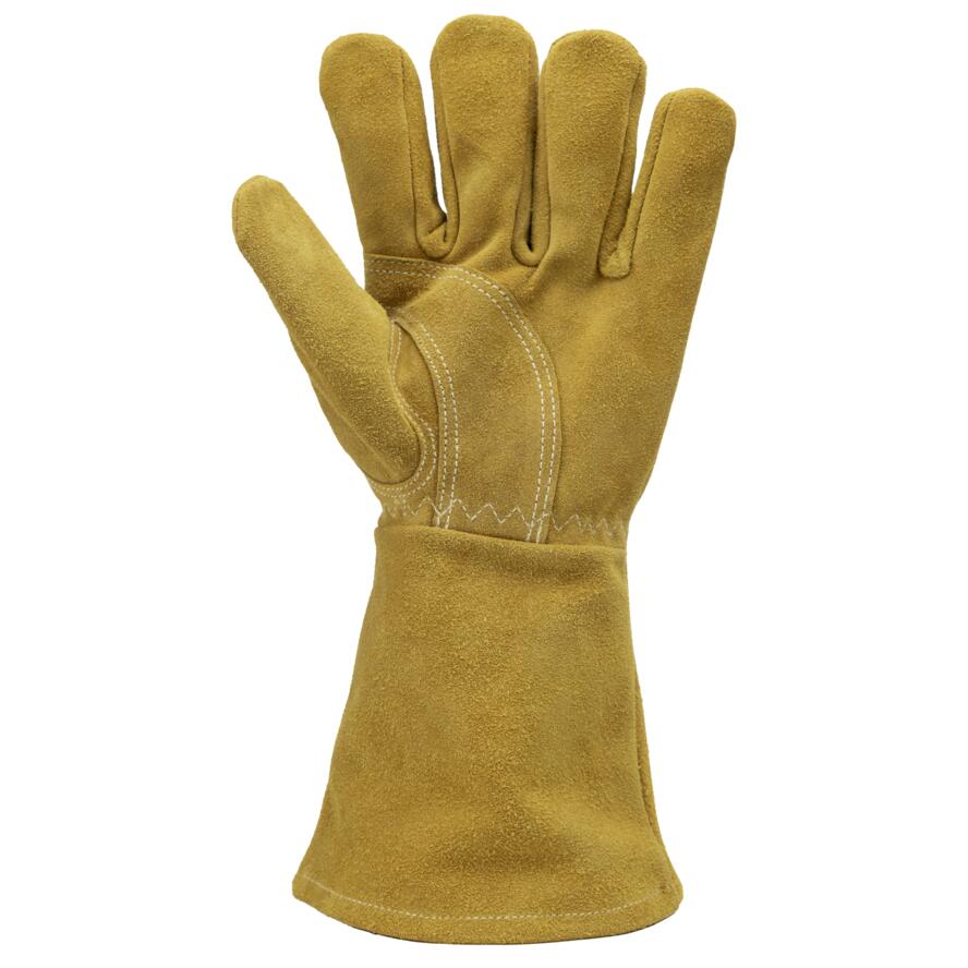 Mănuși de protecție confecționate din piele șpalt de bovină, cu cusături rezistente din Kevlar® pentru durabilitate sporită. Dispun de protecție suplimentară în palmă, în zona degetului mare, căptușeală interioară din fleece pentru confort termic, încheietură elastică și manșetă de protecție cu lungimea de 15 cm. Ideale pentru lucrări grele în condiții solicitante.