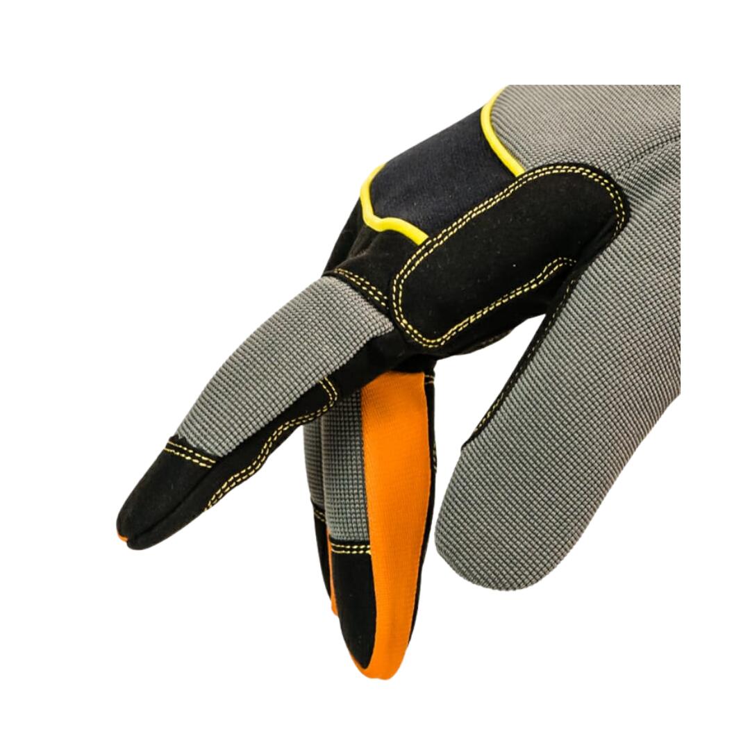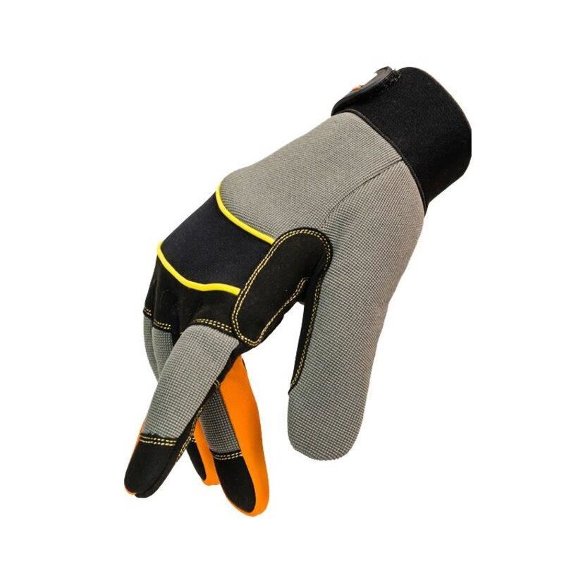 Mănuși de protecție pentru mecanici din piele sintetică și strat dublu din fibră de spandex, încidere cu velcro și vârfurile degetelor tip touch screen.