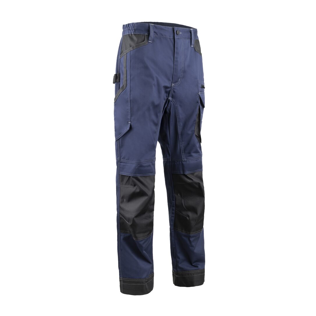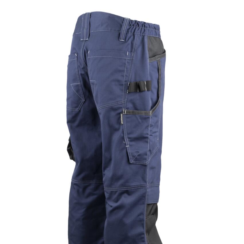 Pantaloni de lucru din material twill (60% bumbac / 40% poliester, 270 g/m²) cu întărituri Oxford 600D pentru durabilitate sporită. Prevăzuți cu talie elastică laterală și 5 bucle pentru curea, dintre care una lată, extensie la spate pentru protecție suplimentară, buzunare multiple funcționale și întărituri în zona genunchilor, fiind ideali pentru activități solicitante.