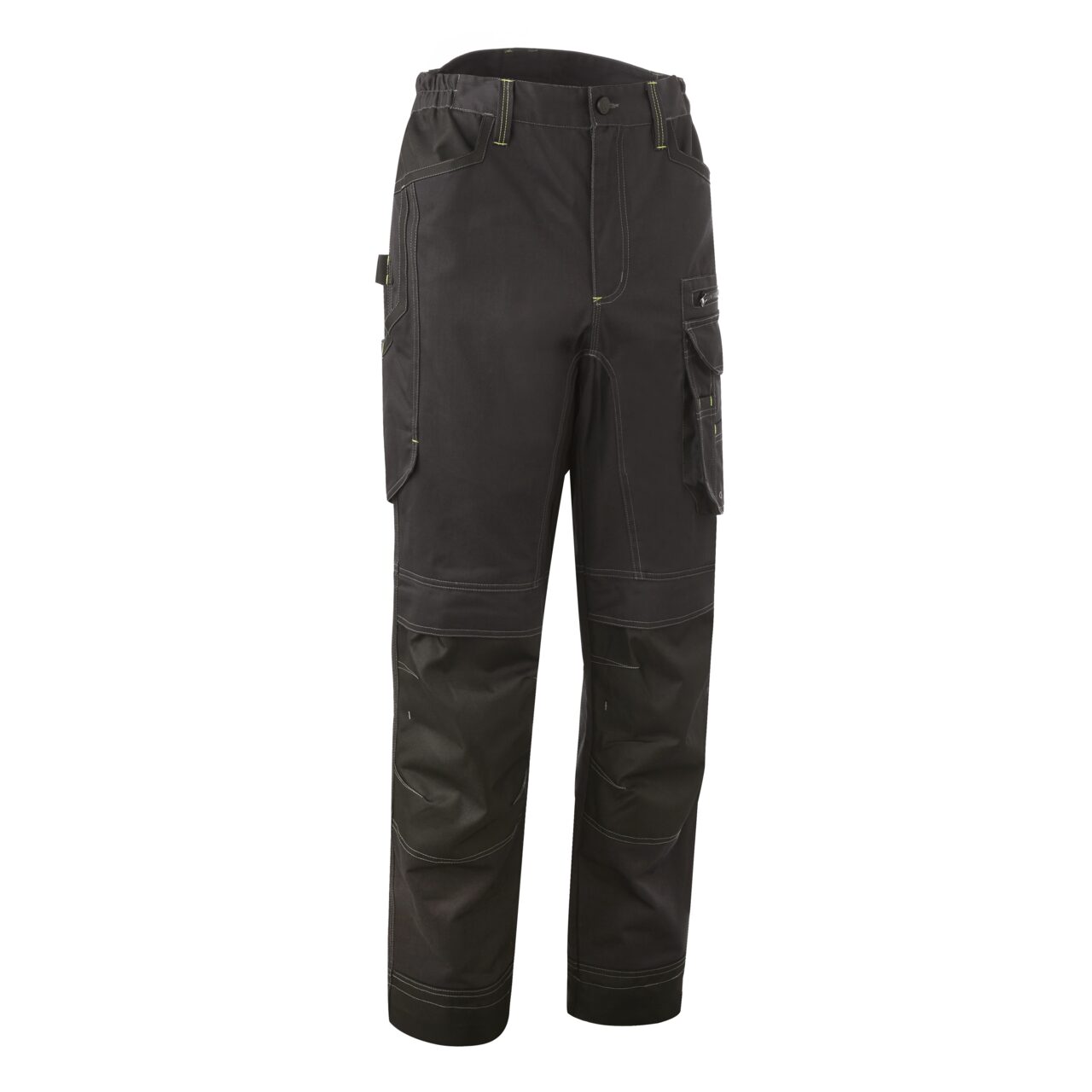 Pantaloni de lucru unisex, confecționați din twill (60% bumbac, 40% poliester, 270 g/mp) și Oxford 100% poliester (600D), asigurând durabilitate și confort. Echipati cu talie elastică laterală, 5 bucle pentru curea (1 largă), extensie la spate și buzunare multiple. Dispun de întăritură pentru inserție genunchiere.