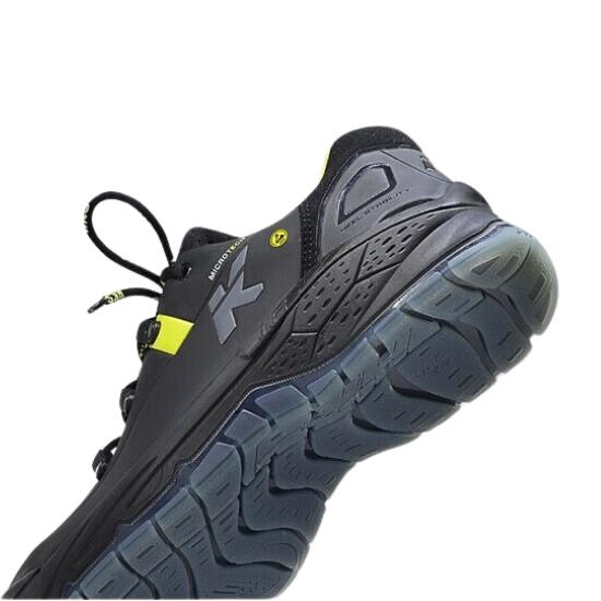 Pantofi de protecție S3, cu bombeu metalic și lamelă din Kevlar, confecționați din microfibră netedă în nuanțe de negru și galben. Asigură confort și siguranță optimă, fiind ideali pentru domenii precum electronică, electrotehnică, telecomunicații și automotive.