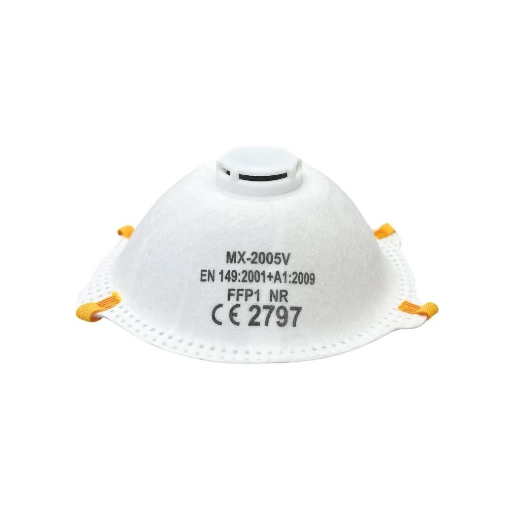 Semimască FFP1 MX-2005V (17V), tip cupă, cu supapă pentru o respirație ușoară și confort sporit. Oferă protecție de bază împotriva particulelor solide și lichide de joasă toxicitate. Ambalată la 2 bucăți/set, este ideală pentru utilizare în medii cu praf sau particule non-toxice.