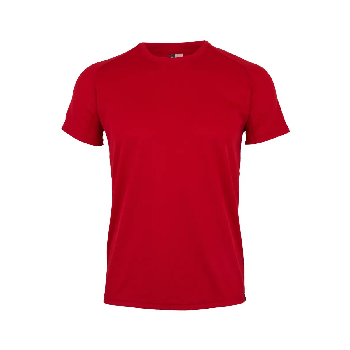 Tricou din 100% poliester (155 g/mp), cu textură moale, similară bumbacului. Design clasic cu guler rotund, mânecă scurtă și cusături laterale, oferind confort optim.